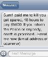 自本周一起,澳大利亞有數(shù)千人收到一條死亡威脅短信,稱如果不在48小時內(nèi)支付5000澳元,就會性命不保。澳大利亞警方稱該短信可能是有組織犯罪團伙所為,并告誡人們收到此類短信后“不要回復,立即刪除,不要驚慌”。