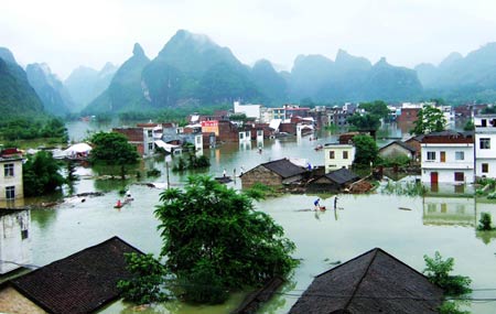 Rainstorms and floods have ravaged the provinces of Zhejiang, Anhui, Jiangxi, Hubei, Hunan, Guangdong, Guizhou and Yunnan and the Guangxi Zhuang Autonomous Region since June 6. Among them, Guangxi, Guangdong, Hunan and Jiangxi were worst-hit, the ministry said. The MCA and the Ministry of Finance allocated 95 million yuan to Guangxi and Jiangxi as a disaster relief fund Tuesday to help support daily life of people in flood-hit areas. A total of 3,000 tents have been sent to Guangxi, according to the MCA.