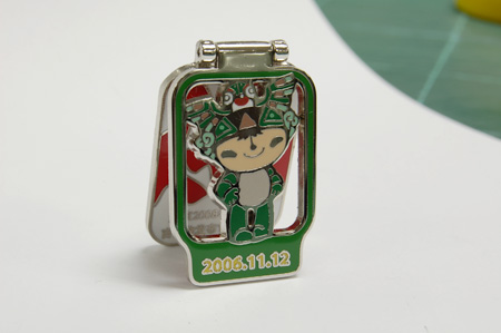 Olympic mascot pins and non-precious metal products.The Beijing Organizing Committee for the Games of the XXIX Olympiad (BOCOG) has unveiled many kinds of new and creative Olympic licensed products on the occasion of Fuwa's birthday on November 11, 2005.[BOCOG]