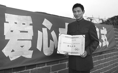 Internationally acclaimed Hong Hong singer-actor Andy Lau with the certificate as a publicity ambassador for the Paralympic cause in China. He has sponsored some athletes with disabilities.
