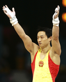 "This win has really boosted my confidence for the future," Yang said. He Ning had a rough start on vault, scoring just 13.750, but recovered on uneven bars, then dominated on the two final events of balance beam and floor exercise. "After the start I just got more and more stable and more and more confident. I'm really happy for the win and really hope I can win more golds," said the 16-year-old. He Ning finished with a total of 59.450, followed by Zhou with 59.050 and North Korea's Hong Su Jong with 57.800. Coming on top of team all-around golds on Sunday, China's wins help seal a comeback that got under way with China winning eight out of 14 titles at the world championships in Denmark in October. Barely two years ago, China had suffered through an embarrassing Olympics in Athens, when the men finished fifth and the women seventh. China has won every men's Asian Games team gold since 1974.