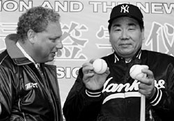 the NY Yankees with his Chinese counterpart, Hu Jianguo, during a media