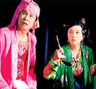 Wearing the typical southern Chinese tie-dyedclothes and big red flowers in their hair, six girls sang the traditional Chinese song What a Beautiful Jasmine to Chinese President Hu Jintao as they waved traditional Chinese fans painted in classical red.