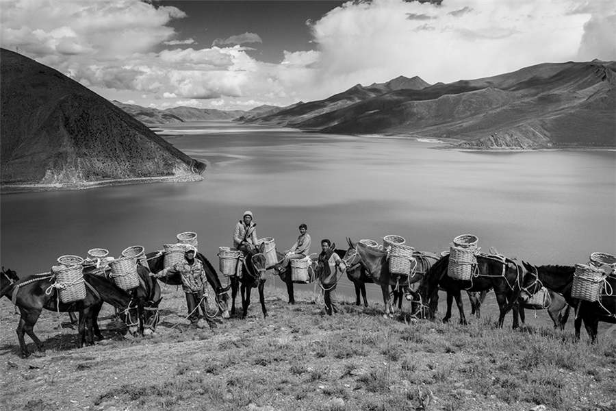 Mule skinners at the Yamdrok Lake. [Photo by Wang Weitao/cpanet.org.cn]