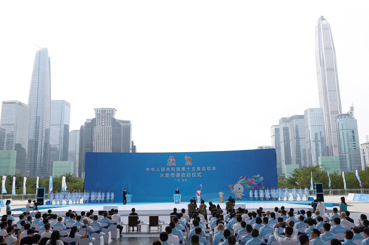 This photo taken on Nov 2, 2025 shows the launching ceremony of the torch relay for China's 15th National Games in Shenzhen, South China's Guangdong province. [Photo/Xinhua]