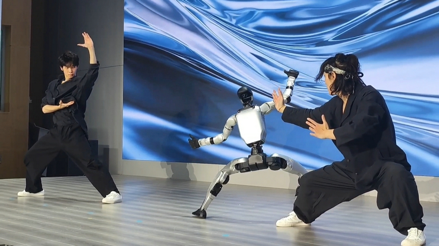 During the opening ceremony, a robot dog from Deep Robotics roamed the venue, delivering bottled water to guests, while a humanoid robot developed by Unitree Robotics stole the show with a captivating performance. The robot showcased its agility with a Chinese Kung Fu routine, battling contemporary dancer Chen Zihao and Beijing Dance Academy student Liu Yanbei.