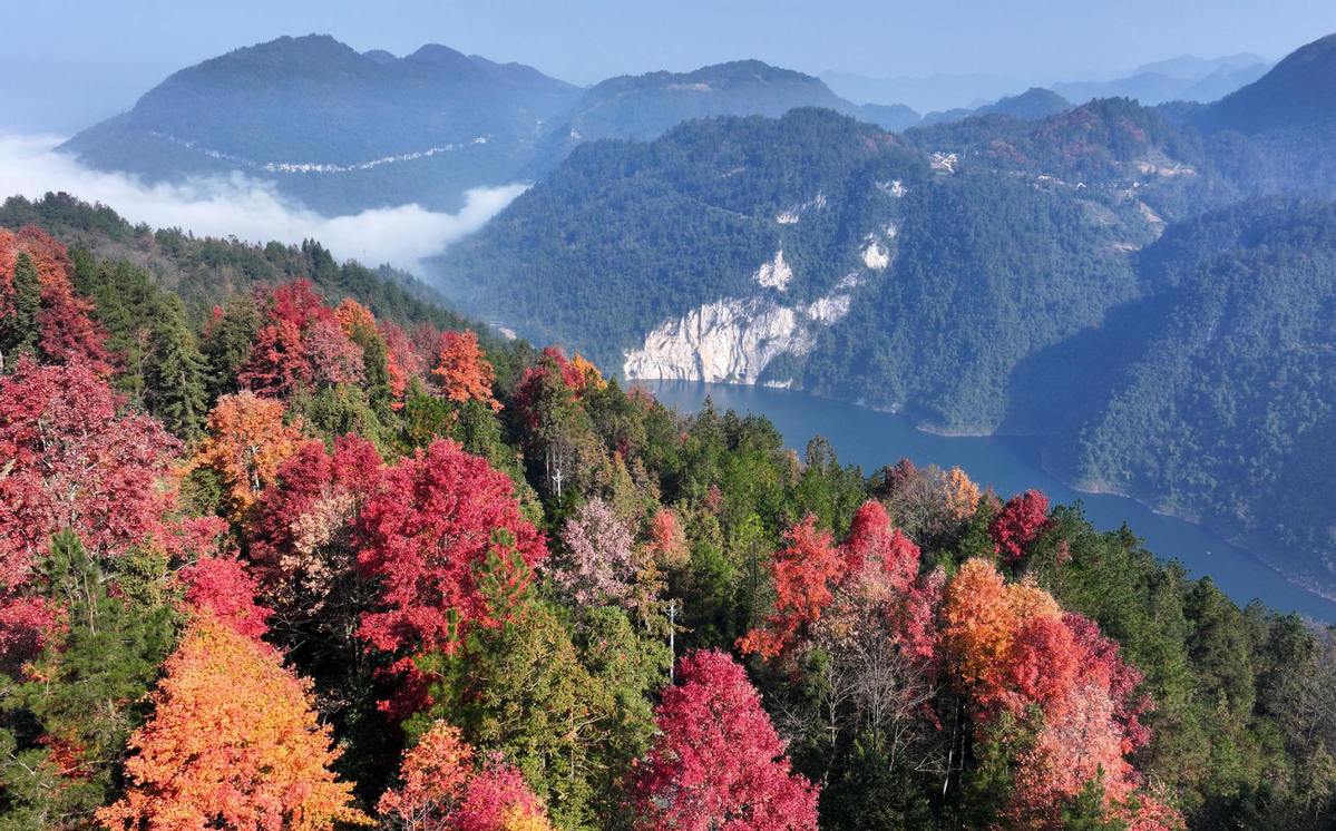 An aerial drone photo taken on Dec 1, 2025 shows a forest in Zhushan town, Xuan'en county, Enshi Tujia and Miao autonomous prefecture, Central China's Hubei province. [Photo/Xinhua]