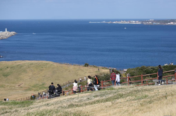 Tourists enjoy the view on Jeju Island, South Korea, Nov 19, 2023. Jeju Island, located in the southern part of South Korea, is a popular tourist destination in the country. [Photo/Xinhua]