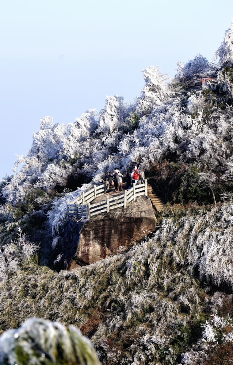 Hengshan Mountain in Hunan province transformed into a glistening winter paradise this past weekend, with spectacular rime scenery drawing visitors after a recent snowfall. [Photo by Lin Xiyang/for chinadaily.com.cn]