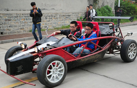 Photo taken on Oct 21, 2014 shows two three-floor houses amid high residential buildings in Shenzhen, South China's Guangdong province. The developer of these apartments abandoned land under this house, after failing to make a deal with the owners on relocation in 2000. [Photo/CFP] |