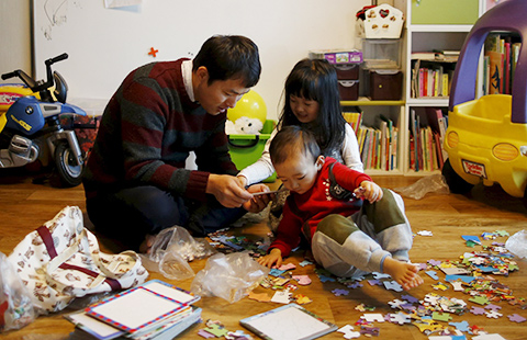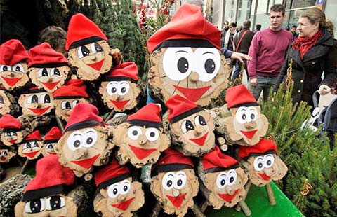 A teacher dressed in a Santa Claus costume teaches students to make a mini Christmas tree in Yantai, East China's Shandong province, Dec 12, 2015. Santa Claus is busy during the Christmas period. Not only is he sending gifts to children from chimneys, Santa Claus is also a driver, a teacher, and a diver in China. [Photo/IC]