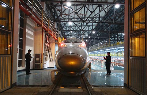 A train enters a maintenance workshop of Chengdu railway section, Feb 1, 2016. [Photo/CFP]