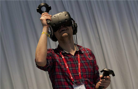 Jia Bing jumps down from a platform after she painted a mural in Xi'an, Shaanxi province, Dec 22 2015. Jia is a self-employed painter who once worked at a cartoon company. The post-80s artist grew tired of working there and left the cartoon company after three years in 2013. [Photo/CFP]