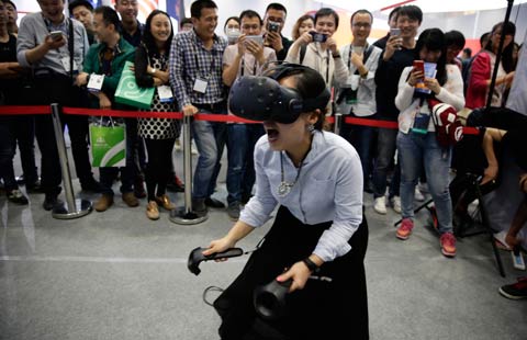 A mobile phone user uses the mobile app of Chinese online retailer JD.com on his smartphone in Zhengzhou city, Central China's Henan province, Oct 3, 2015. [Photo/IC] |