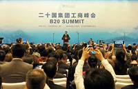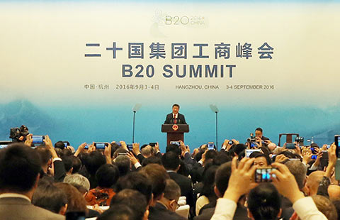 Delivering a keynote speech at the Business 20 summit in Hangzhou, President Xi Jinping urges remedies for world economic growth.