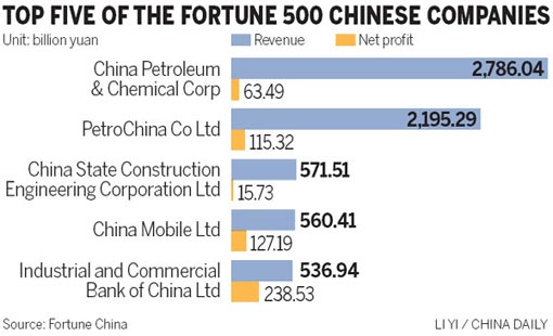 Only 26 financial institutions were among the ranks of the 500 largest companies in China by revenue, which was released by Fortune Magazine on Tuesday.