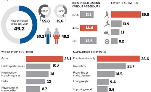 More Chinese people aged 20 to 39 are becoming overweight and their athletic ability is declining, according to a national survey released on Monday.