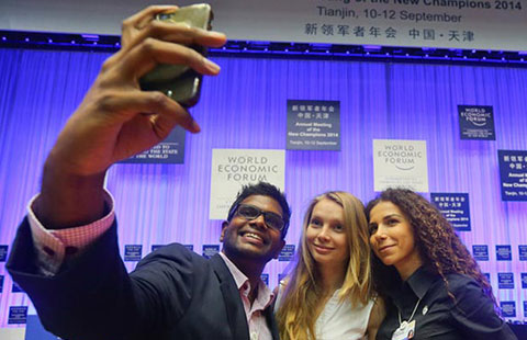 Women walk past Volkswagen and Honda cars on display at an automobile market in Beijing, June 17, 2014. [Photo/Agencies] |