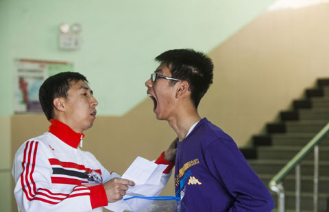A visitor walks past a logo of FAW-Volkswagen during an auto show in Fuyang city, East China's Anhui province, September 12,?2014. [Photo / IC] |