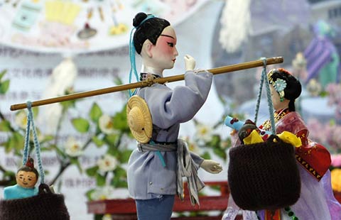 A woman stands next to a door inside the headquarters of Alibaba in Hangzhou, Zhejiang province, April 23, 2014.?[Photo/Agencies] |