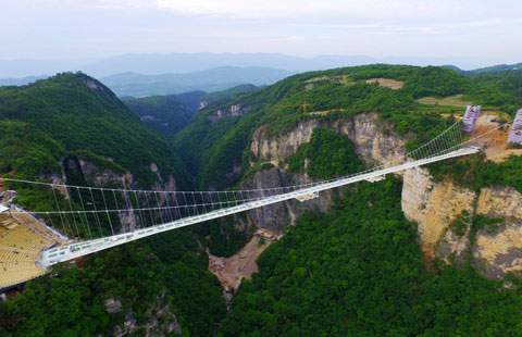 World's highest, longest glass-bottomed bridge takes shape in Hunan