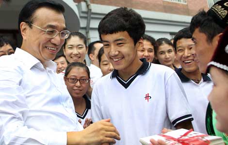 Premier Li Keqiang has called for promoting education equality during a visit to students from the Xinjiang Uygur autonomous region who are studying in Dalian, Liaoning province.