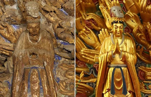 Tourists visit the Mogao Grottoes, a scenic spot in Dunhuang, Northwest China's Gansu province, April 13, 2017. [Photo/Xinhua] |