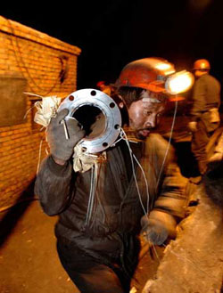 pipes to pump water out of the flooded shaft of a coal mine in order to