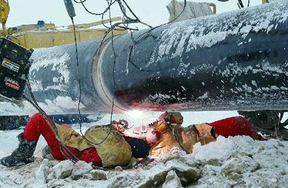 welding operation of the China-Kazakhstan oil pipeline in this undated