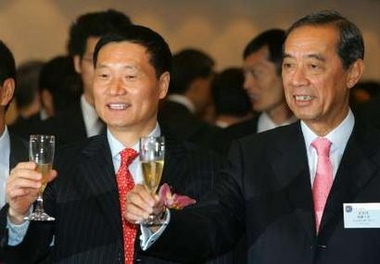 Kong Exchanges Chairman Ronald Arculli toast at a ceremony marking BOC's trading