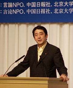 Secretary Shinzo Abe speaks at the Tokyo-Beijing Forum sponsored by China