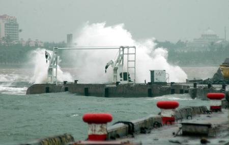 3, 2006 shows the big wave in the harbor of Haikou, capital of south