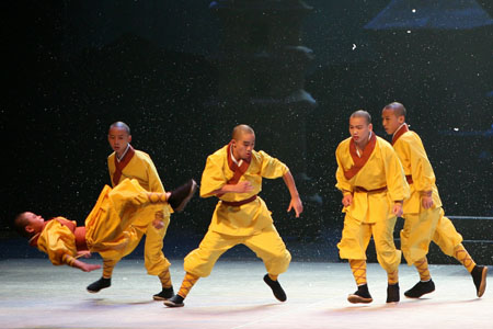 Chinese Shaolin artists perform during