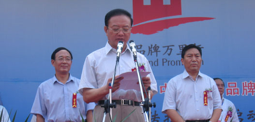 Vice Minster of Commerce Wei Jiangguo (C) speaks at the Brand