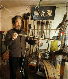 Yang Fuxi, China's last known traditional bow and arrow maker, is plying a