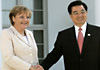 Members of Stockholm's Chinese community hold their cameras ready as they stand behind a welcoming banner before the arrival of China's President Hu Jintao at Arlanda Airport in Stockholm June 8, 2007. Hu is on a three-day state visit to Sweden. [Reuters]