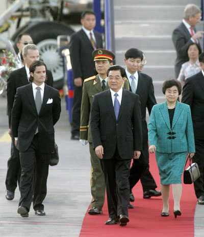 Arlanda Airport in Stockholm June 8, 2007. Hu is on a three-day state
