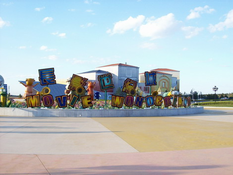Colorful signs welcome visitors to Changchun Movie Wonderland in Changchun, Northeast China's Jilin Province, September 3, 2007. Nicknamed as the "Oriental Hollywood" by locals, the park is China's first film amusement park, which includes the Motion Dome Theater, Water Screen Theater, Giant Screen Theater and 4D Theater. Tourists can watch movies shown using advanced technology and experience the process of shooting a movie. [chinadaily.com.cn] |