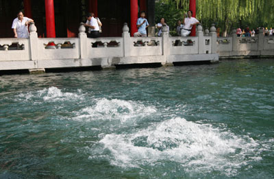 Tourists watch the spewing of the Baotu Spring in Jinan, capital of East China's Shandong Province, Sept. 5, 2007.