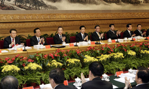 Top Party leaders attend the second meeting of the presidium of the 17th Party Congress at the Great Hall of the People in Beijing October 17, 2007. The meeting adopted the election procedures for the CPC Central Committee. [Xinhua]