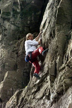French climber Alain Robert, the famed "Spiderman" ,climbs Tianmen mountain in Zhangjiajie, Central China's Hunan Province, November 18, 2007. [Xinhua