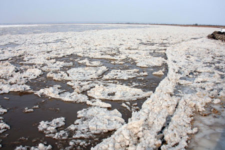 Ice drift is seen on the Yongji section of the Yellow River in Shanxi Province of North China January 25, 2008. Recent low temperatures freezed the river and local river authority said more ice drift was expected during the next few days. [Xinhua]