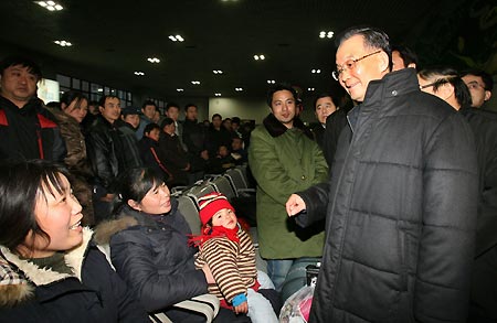 Updated: 2008-01-27 08:28 The Beijing West Railway Station, which is expected to see 22 million outgoing and incoming passengers during the Spring Festival transportation season, has opened 266 ticket windows. The Ministry of Railways recently estimated that railway passengers are likely to reach 178.6 million between January 23 and March 2. Migrant workers account for 70 percent of the railway passengers. Wen had a meeting with some officials from the National Development and Reform Commission, the Ministry of Communications and the Ministry of Railways, and urged these departments to ensure traffic safety for the railways, highways, aviation and waterways, The premier also called for joint efforts by different departments to ensure the production, storage and transportation of coal for thermal power plants, so as to guarantee electricity supply for residents as well as important units, hospitals and schools. |
