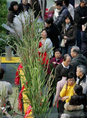 Local residents choose flowers at the New Year Fair held at the Victoria Park in Hong Kong, South China, Feb. 3, 2008. [Xinhua]