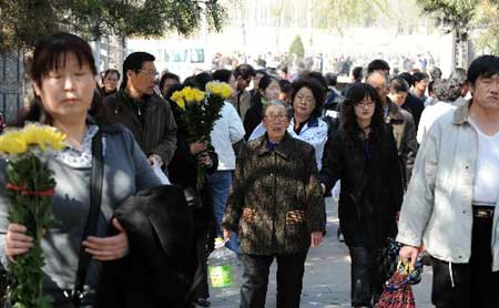 Unlike Beijing, many residents of Shanghai, China's largest metropolis and one of the most densely-populated cities, have to go to neighboring cities to visit relatives' tombs. Space for the dead is at even more of a premium in Shanghai than for the living, and the city's graveyards long ago stopped accepting new remains. Suzhou, Jiangsu Province, receives 900,000 tomb-sweepers from Shanghai every year. Friday was a day of remembrance in many areas of China. In Huangling County, Shaanxi Province, 8,000 people including some senior officials attended the annual memorial service at the tomb of Huangdi, the "Yellow Emperor" of Chinese legend.
