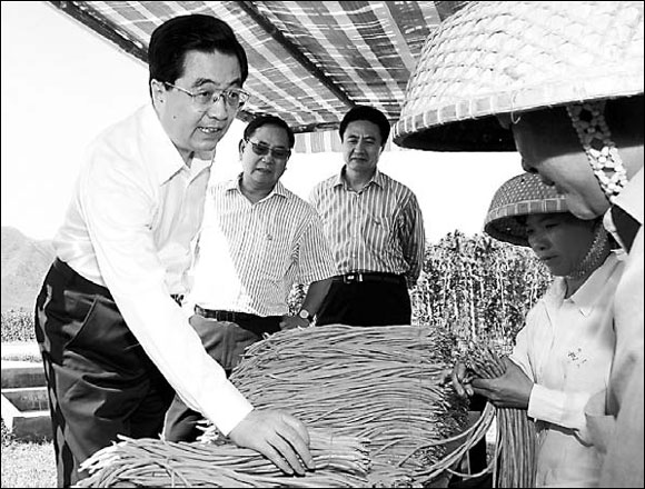Hu inquired about farmers' lives and learned from them the difficulties they faced.