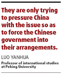 "They are only trying to pressure China with the issue so as to force the Chinese government into their arrangements," she said.