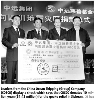SOEs are also playing an important role in relief work with China National Erzhong Group Corp, China Railway Engineering Corp second Bureau and Chengdu Aircraft Industrial (Group) Co Ltd of China Aviation Industry Corp dispatching rescue and relief teams, SASAC said.