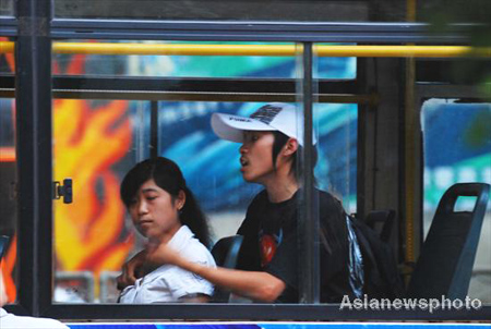 Updated: 2008-06-20 14:14 ![]() A man with a 30-centimeter-long (11.8-inch) knife holds a woman seated in front of him hostage on the No. 20 bus in Guiyang, Guizhou province, June 18, 2008. Police in southwest China said early Thursday they had shot dead the man who held the woman passenger hostage at knifepoint on a bus and asked for guns, ammunition and money, Xinhua News Agency reported. [Asianewsphoto] |