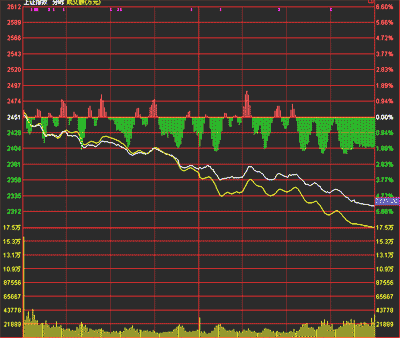 Monday's losses further undermined the Shanghai index, which fell in the first four days last week, dipping from 2,605.72 points to 2,437 points, although it edged up 0.56 point on Friday. Aggregate turnover on Monday rose to 52.39 billion yuan (7.62 billion U.S. dollars) from 47.19 billion yuan on Friday. Losses outnumbered gains by 810-12 in Shanghai and 650-19 in Shenzhen. Individual and institutional investors further lost confidence although the country's insurance regulator promised over the weekend to support the stock market. The regulator didn't elaborate, and the absence of details added to investors' fear, said analysts from www.cfi.net. This week, there will be a large volume of shares coming out of lock-up periods for trading. A total of 18.9 billion non-tradable shares, which were valued at 120 billion yuan, would come onto the market this week.